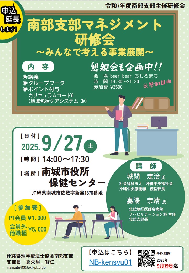 【参加費】沖縄県理学療法士協会会員:1,000円、非会員・他職種5,000円