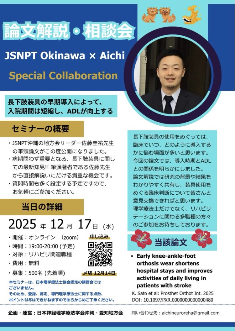 長下肢装具の使用をめぐっては臨床でいつ、どのように導入するか悩む場面が多いと思います。今回の論文では、長下肢装具とADLの関係について研究の背景や結果をわかりやすく共有し、装具使用をめぐる臨床判断について皆さんと意見交換できればと思います。
