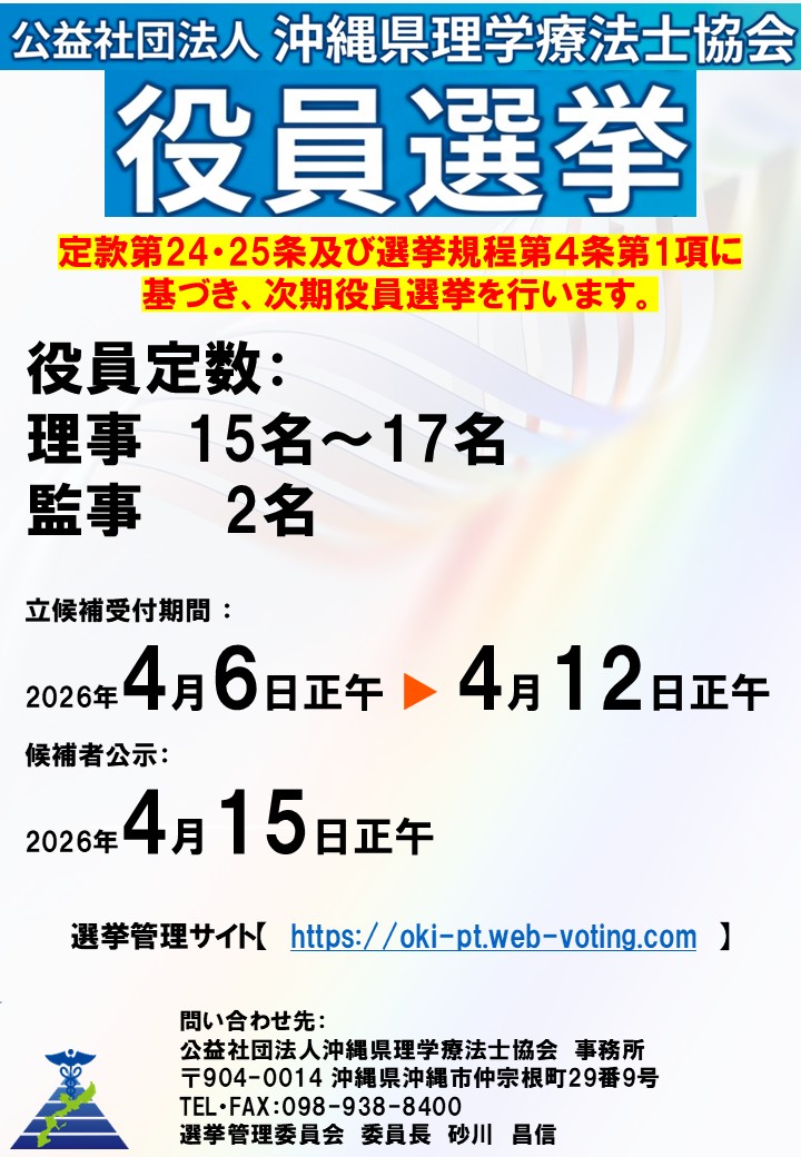 【2026年度】公益社団法人 沖縄県理学療法士協会 役員選挙のお知らせ