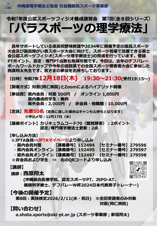 令和7年度 公認スポーツフィジオ養成講習会「パラスポーツの理学療法」