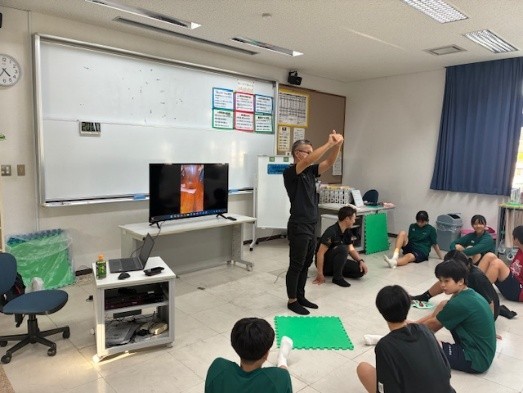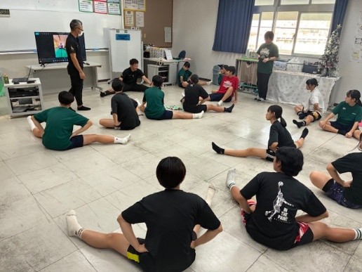 今回、12月24日に平良中学校女子バスケ部の部員・指導者にスポーツ外傷・障害予防についての講義・実技を行いました。
