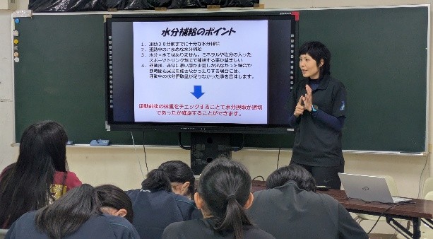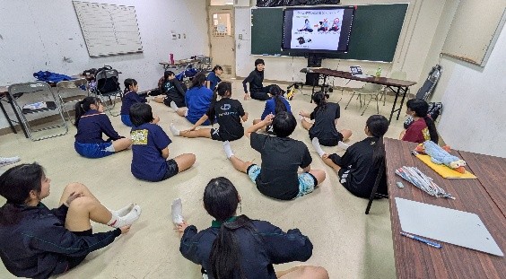 初めて出前講座で講師を担当させて頂きました。対象が女子バレーボール部の部員という事もあり、主なスポーツ外傷・障がいだけでなく、女性特有の月経や月経関連の事についてもお話をさせて頂きました。
